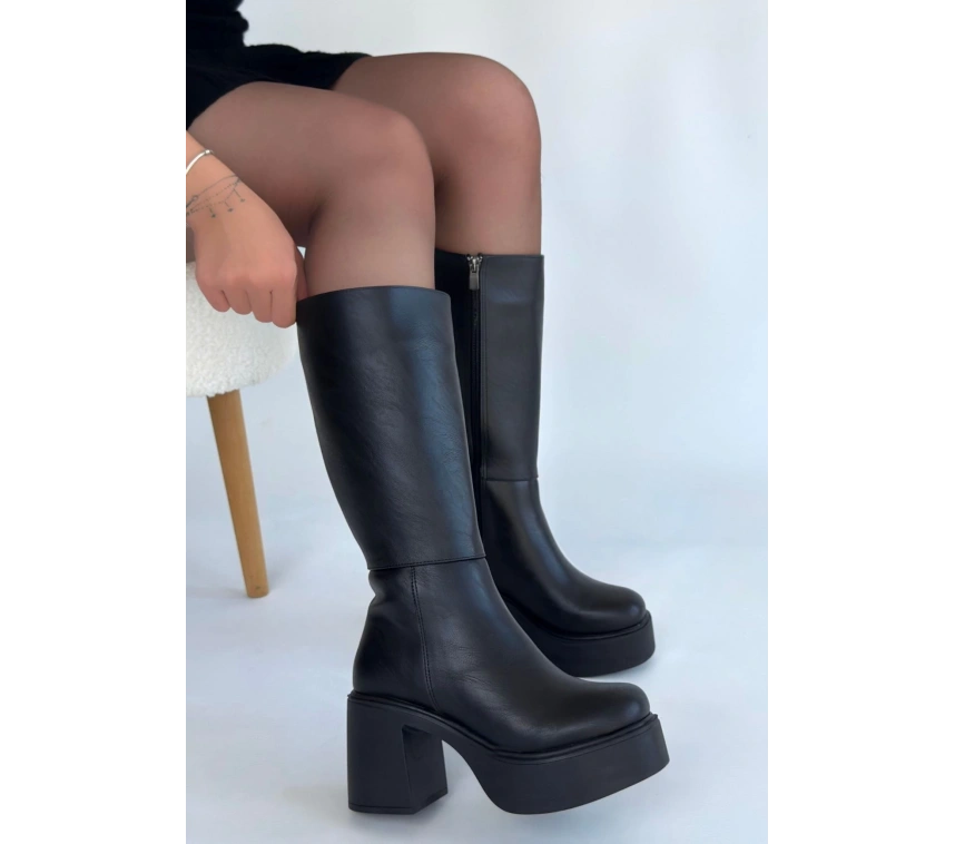 Detay: Topuklu Yandan Fermuarlı Diz Altı Çizme