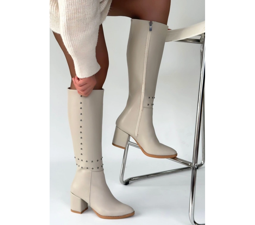 Detay: Topuklu Diz Altı Yandan Fermuarlı Çizme